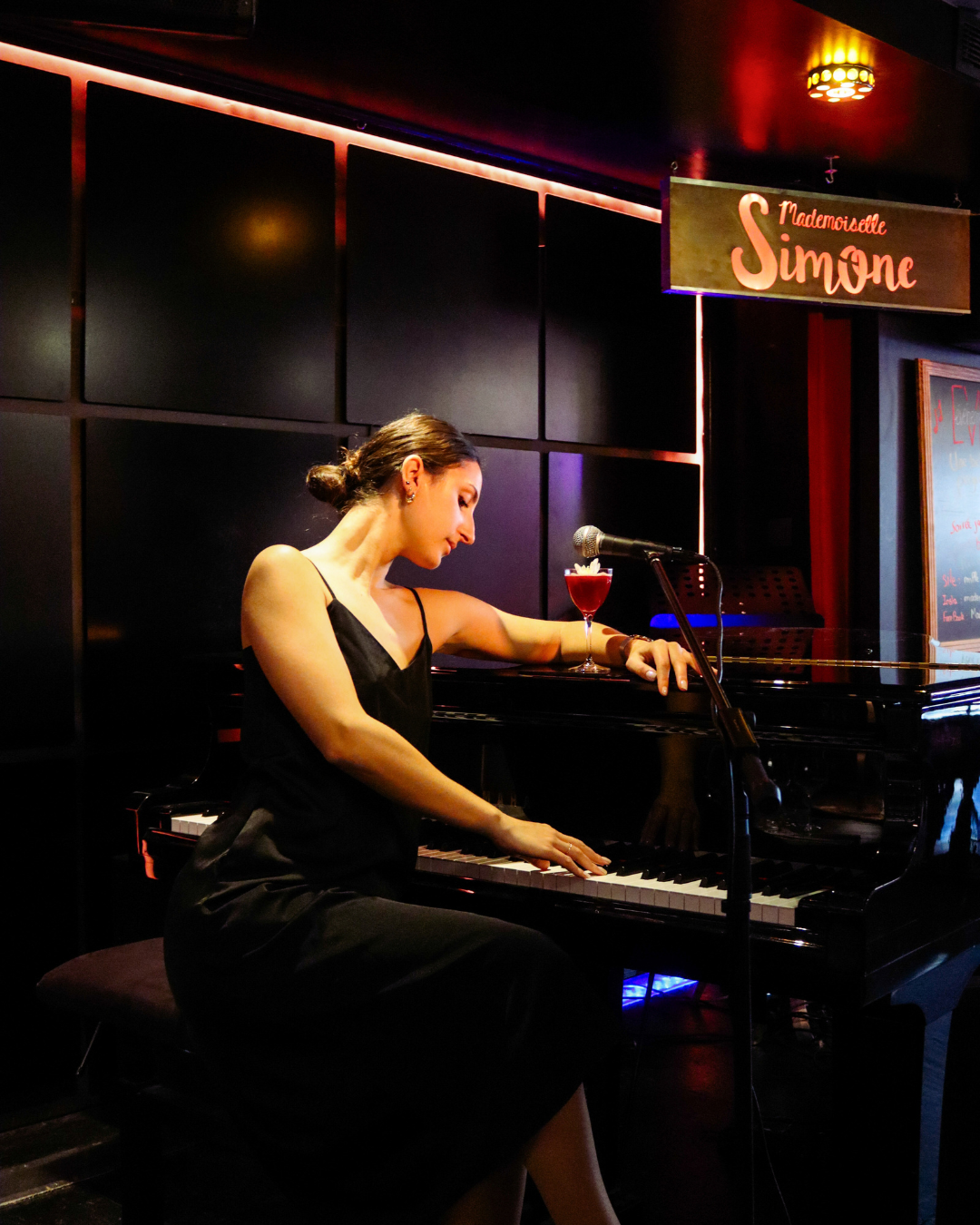 Un aperçu en photos de l’expérience Mlle Simone : cuisine créative, cocktails raffinés et jazz live au cœur de Lyon.