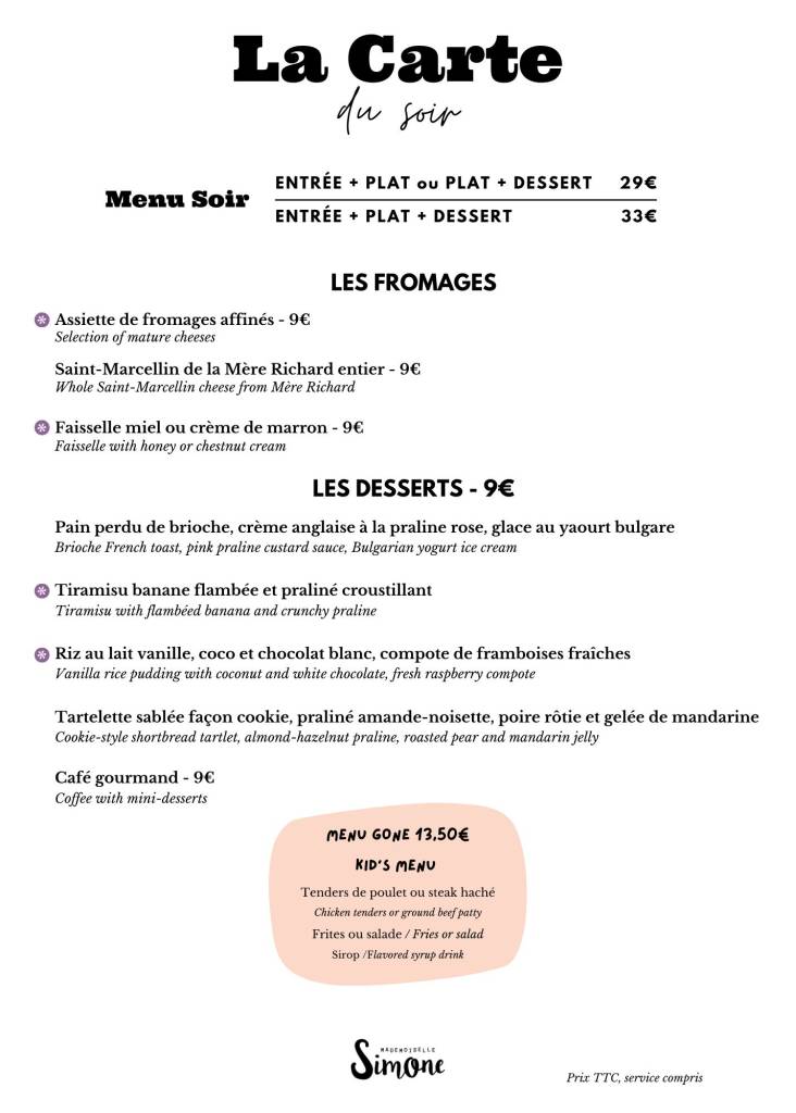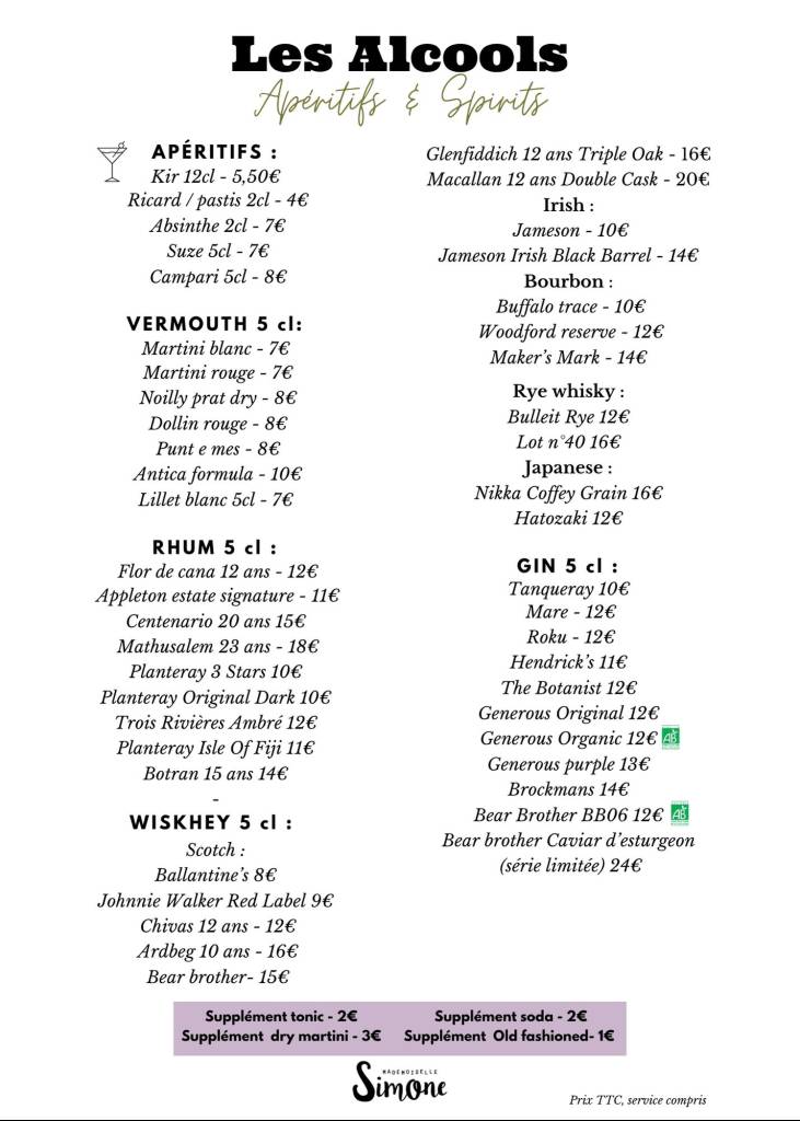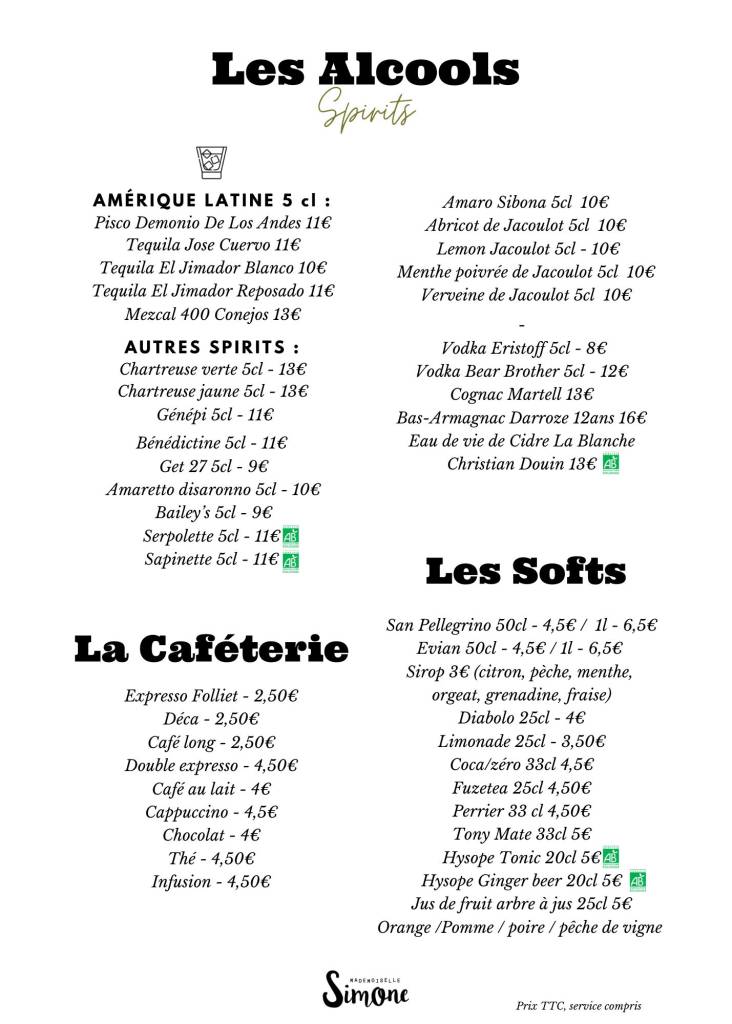 Carte hors concert